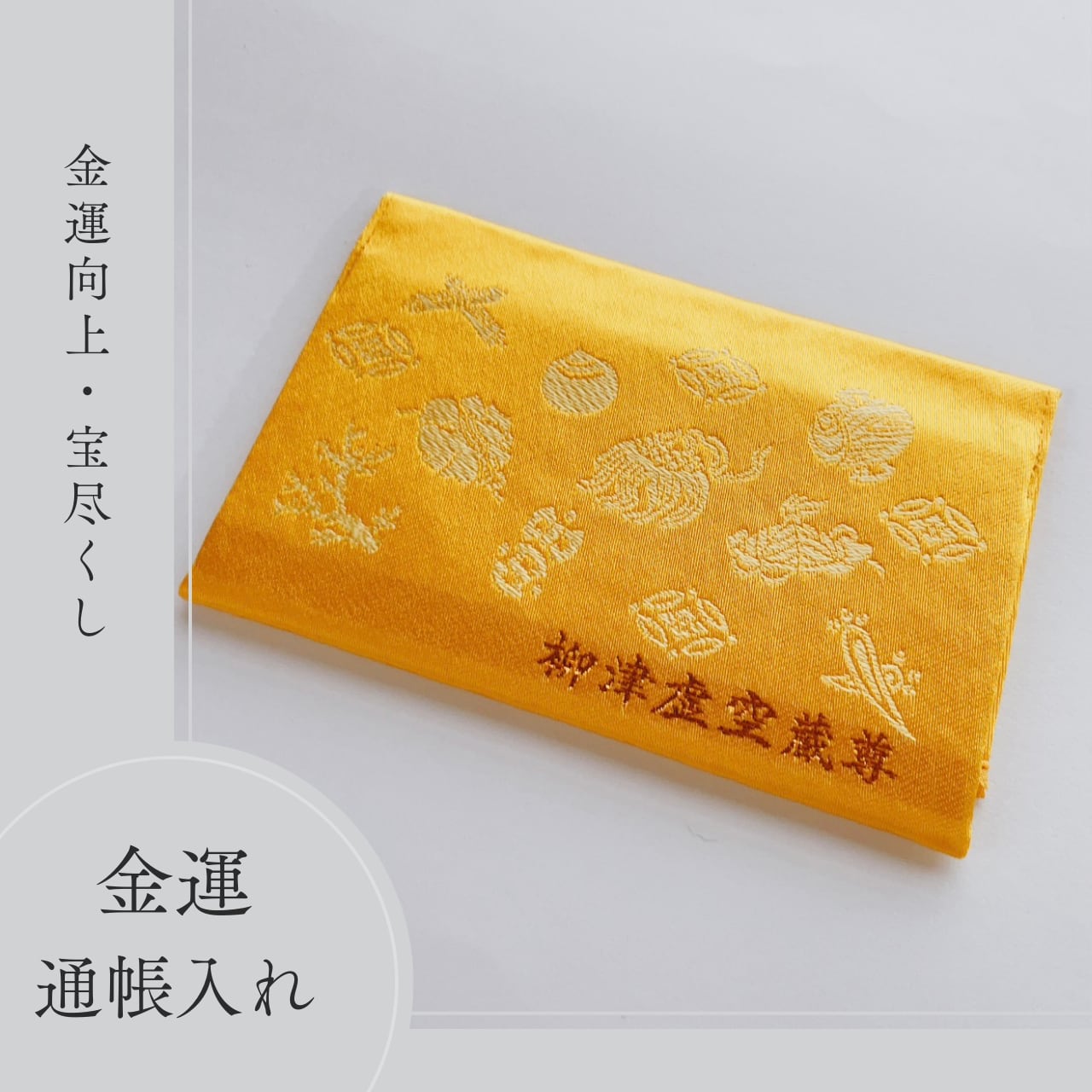 金運が上がると言われる通帳入れです。 通帳5冊ほどまで入ります。 当山オリジナルの宝尽くしのデザインです。